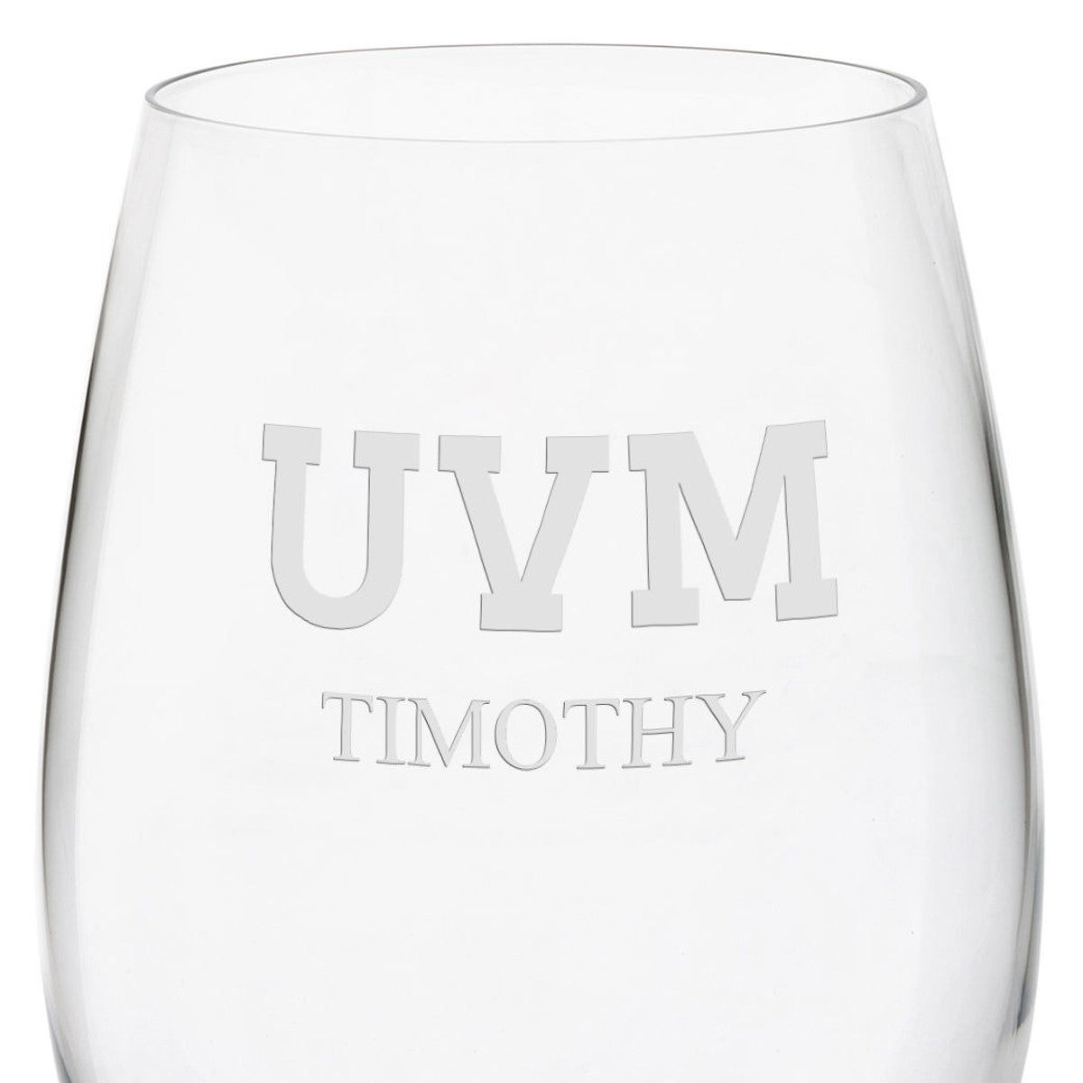 Fine University of Vermont wine glasses are an elegant touch for your table or bar. The Vermont Logo is deep-etched on each glass.