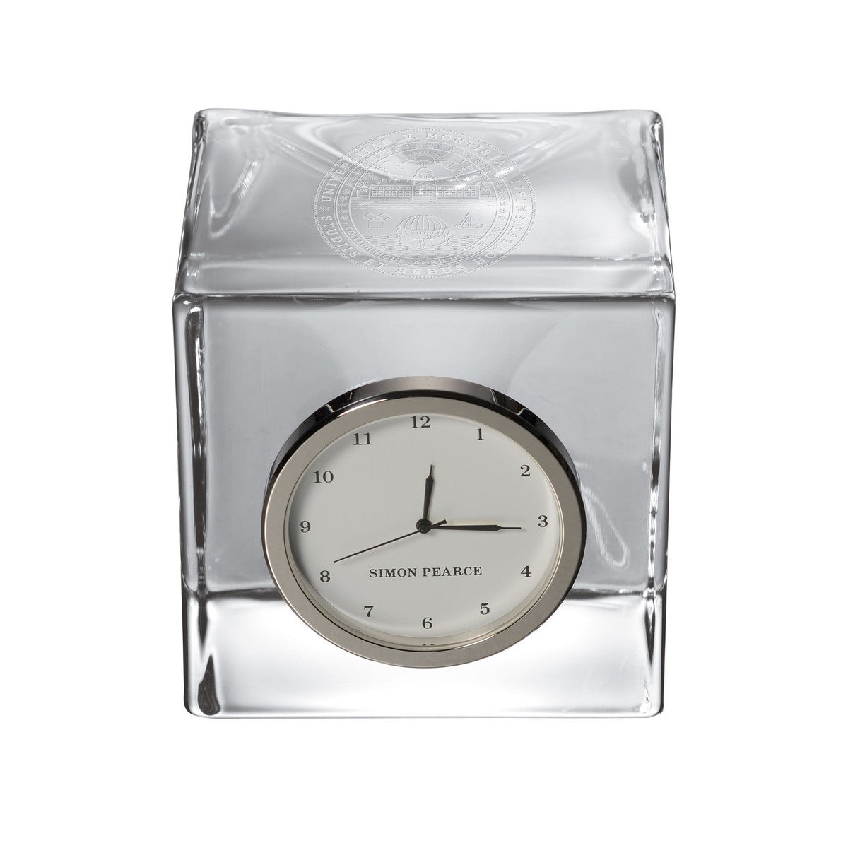 The University of Vermont Glass Desk Clock is distinctly etched with the Vermont Logo, and is a great addition to any surface. The clock includes a traditional numbered face with a sweep hand to count the seconds.