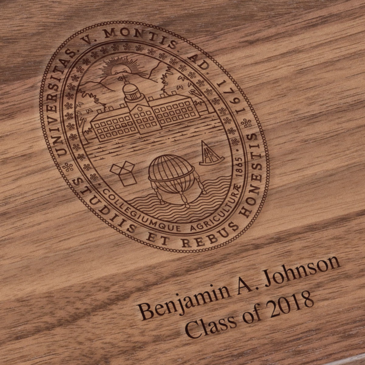 Our beautiful solid walnut desk box is made from hand-selected domestic walnut and crafted in the USA. Each box is hand finished with care, and proudly displays the Vermont Logo on the lid.