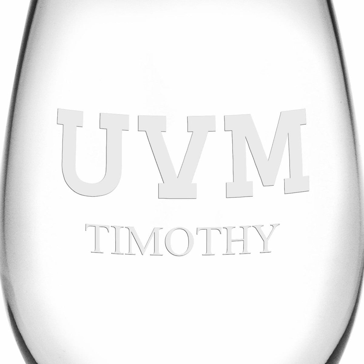 These modern University of Vermont stemless wine glasses are perfect for every occasion and any type of wine. Each glass is made in the USA and laser etched with Vermont Logo.