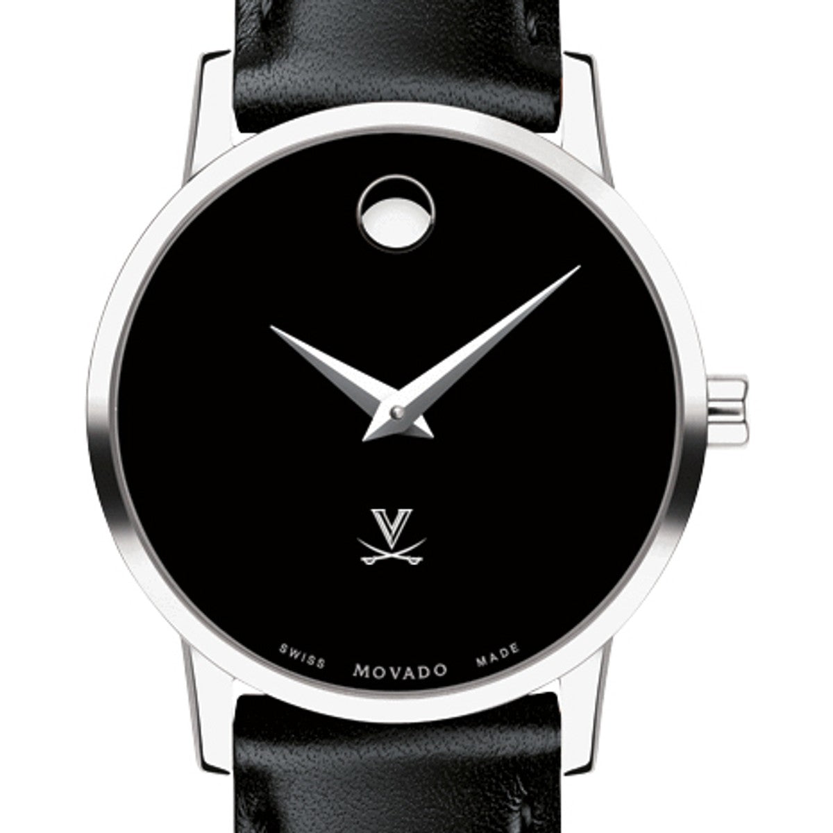University of Virginia Women's Movado Museum watch features the UVA Logo in full color at 6 o'clock on black dial. Created in 1947, the iconic concave dot symbolizes the sun at high-noon. Complimentary personal engraving.