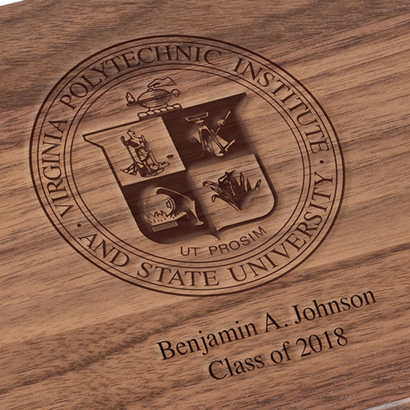 Our beautiful solid walnut desk box is made from hand-selected domestic walnut and crafted in the USA. Each box is hand finished with care, and proudly displays the Virginia Tech Logo on the lid.