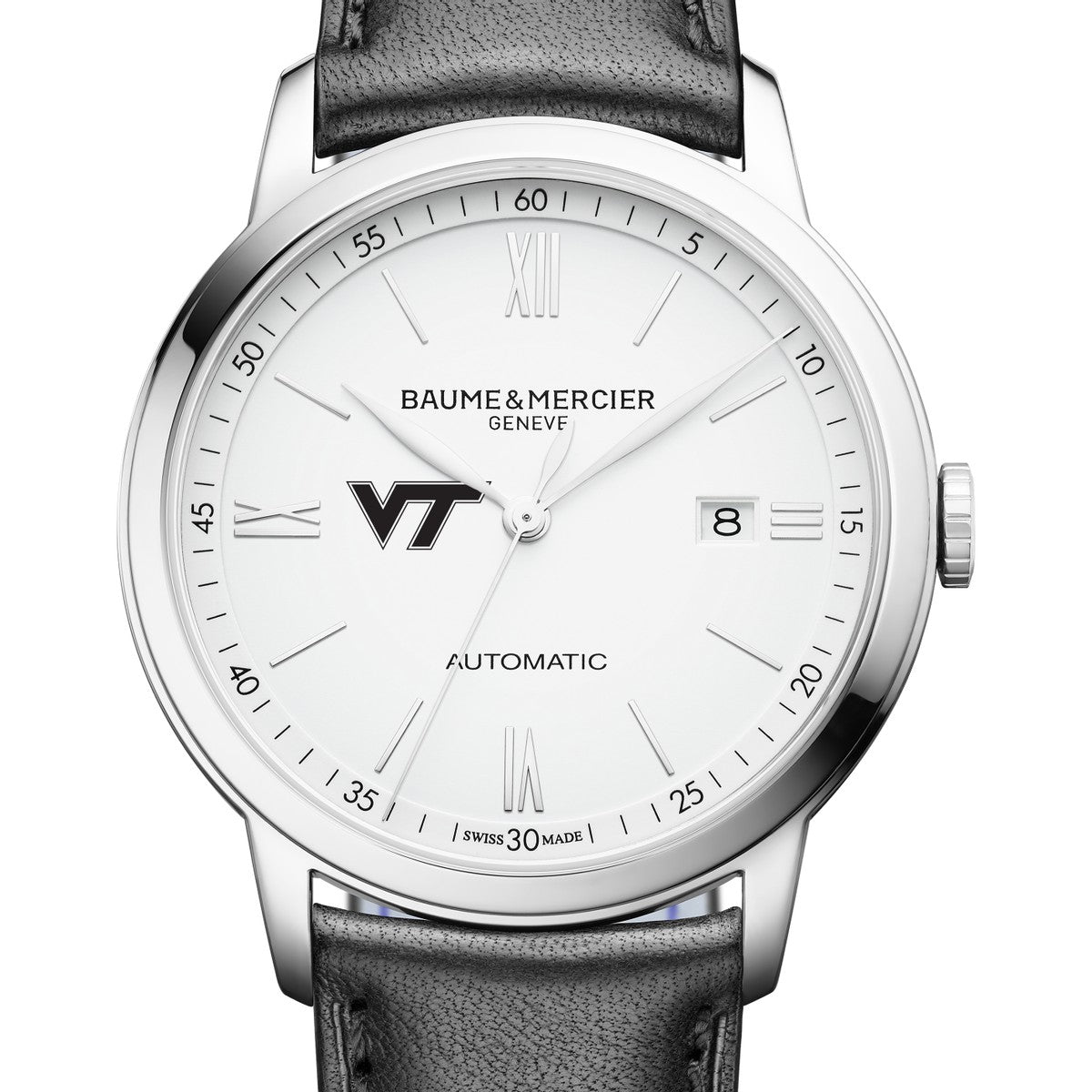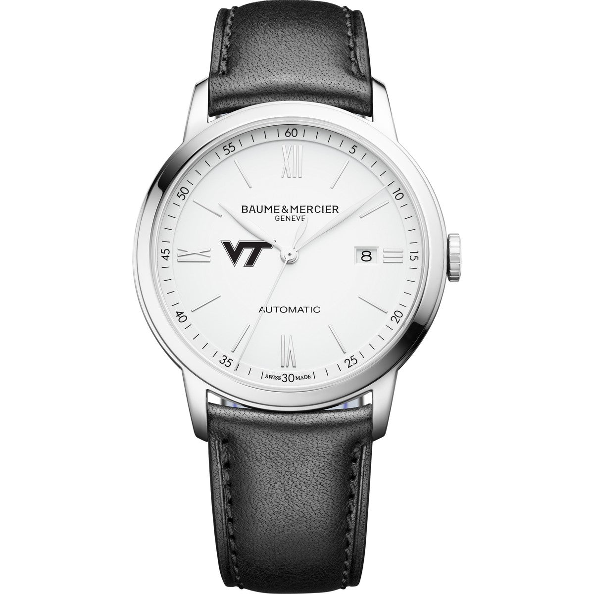 Virginia Tech Men's Baume et Mercier 42mm Classima Automatic Watch with White Dial & Black Leather Strap