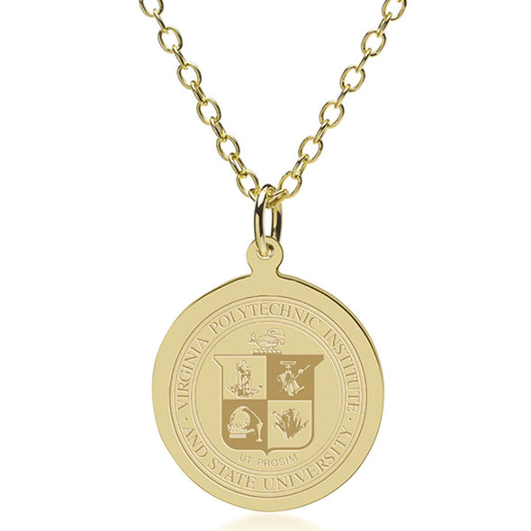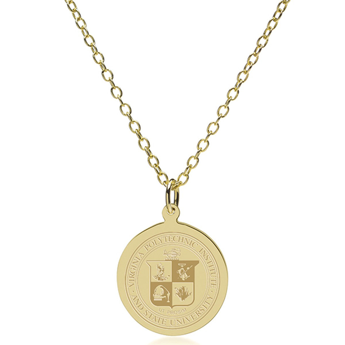 This solid 18-karat gold pendant and chain is an instant heirloom, featuring the Virginia Tech Logo beautifully engraved on the front with room for personalization on the back.