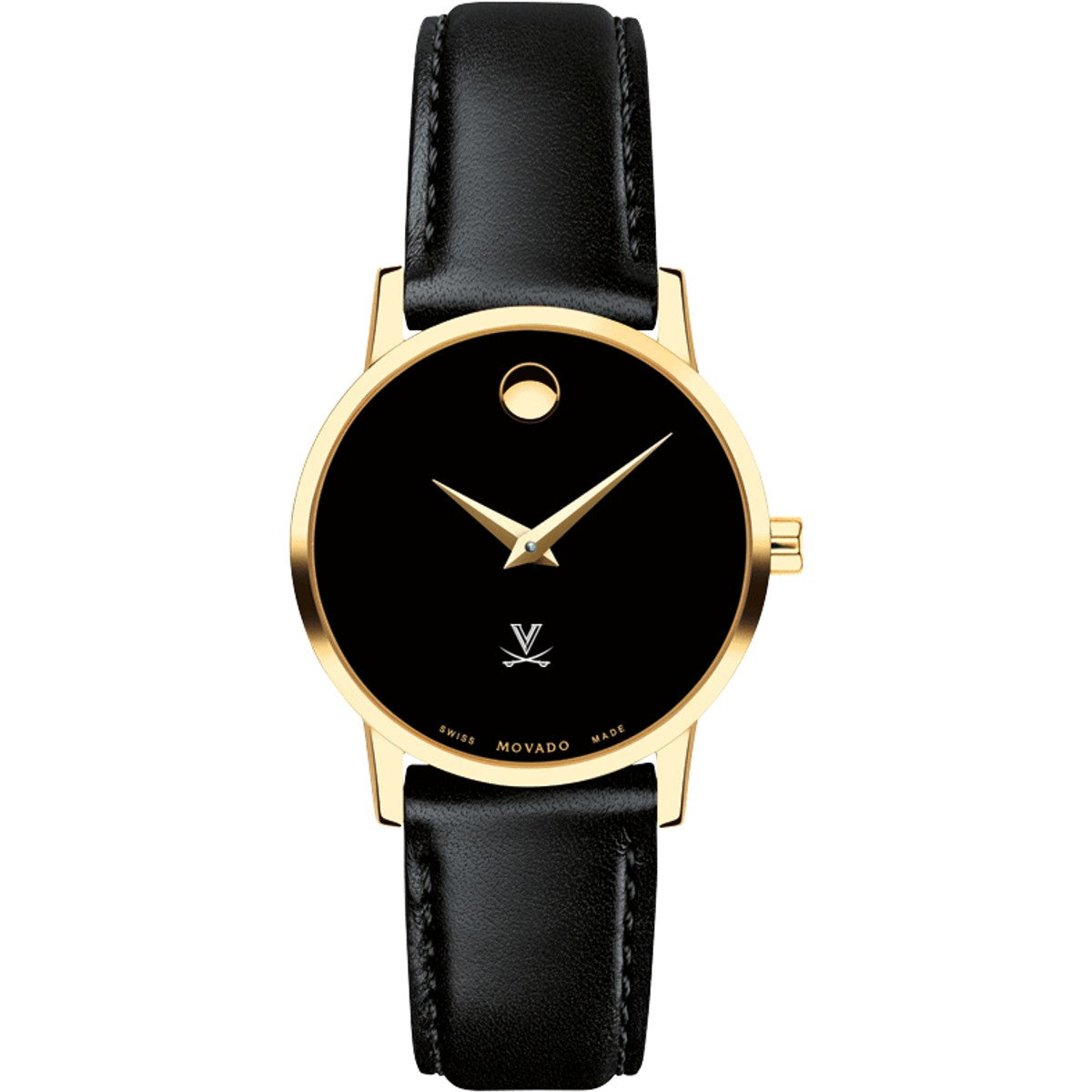 University of Virginia Women's Movado Museum watch features the UVA Logo in full color at 6 o'clock on black dial. Created in 1947, the iconic concave dot symbolizes the sun at high-noon. Complimentary personal engraving.