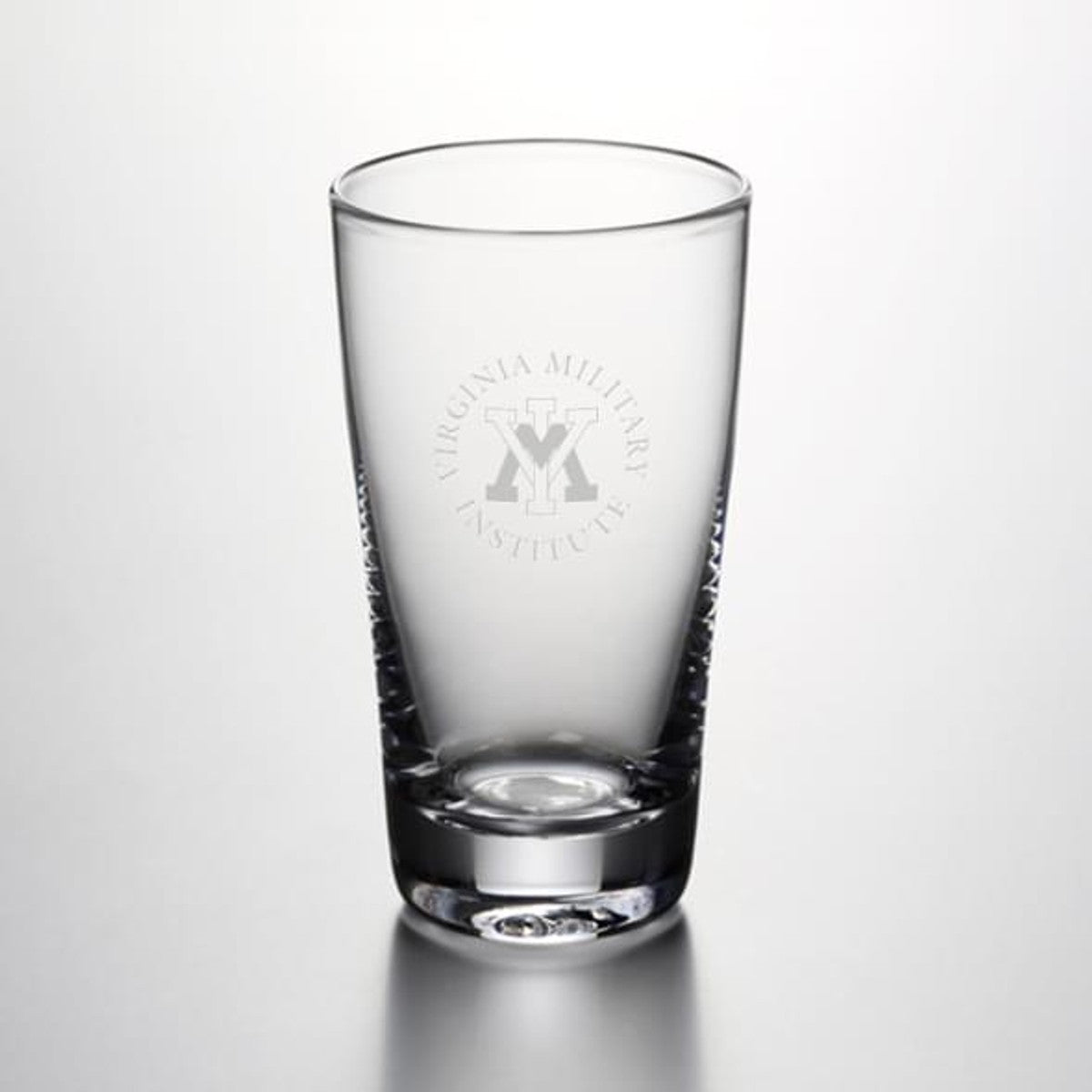 VMI Pint Glass features the VMI Logo handsomely engraved on the hand-blown glass. From its narrowly flared lip to its sleek, cylindrical body and sturdy, solid base, this pint glass is a classic.