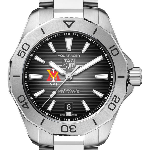 Built for performance and styled for distinction, the Virginia Military Institute Men's TAG Heuer Steel Automatic Aquaracer features VMI Logo on a bold black dial and rugged stainless steel construction. Engineered for reliability and precision, it’s a dynamic expression of school pride and professional-grade craftsmanship. Complimentary personal engraving.