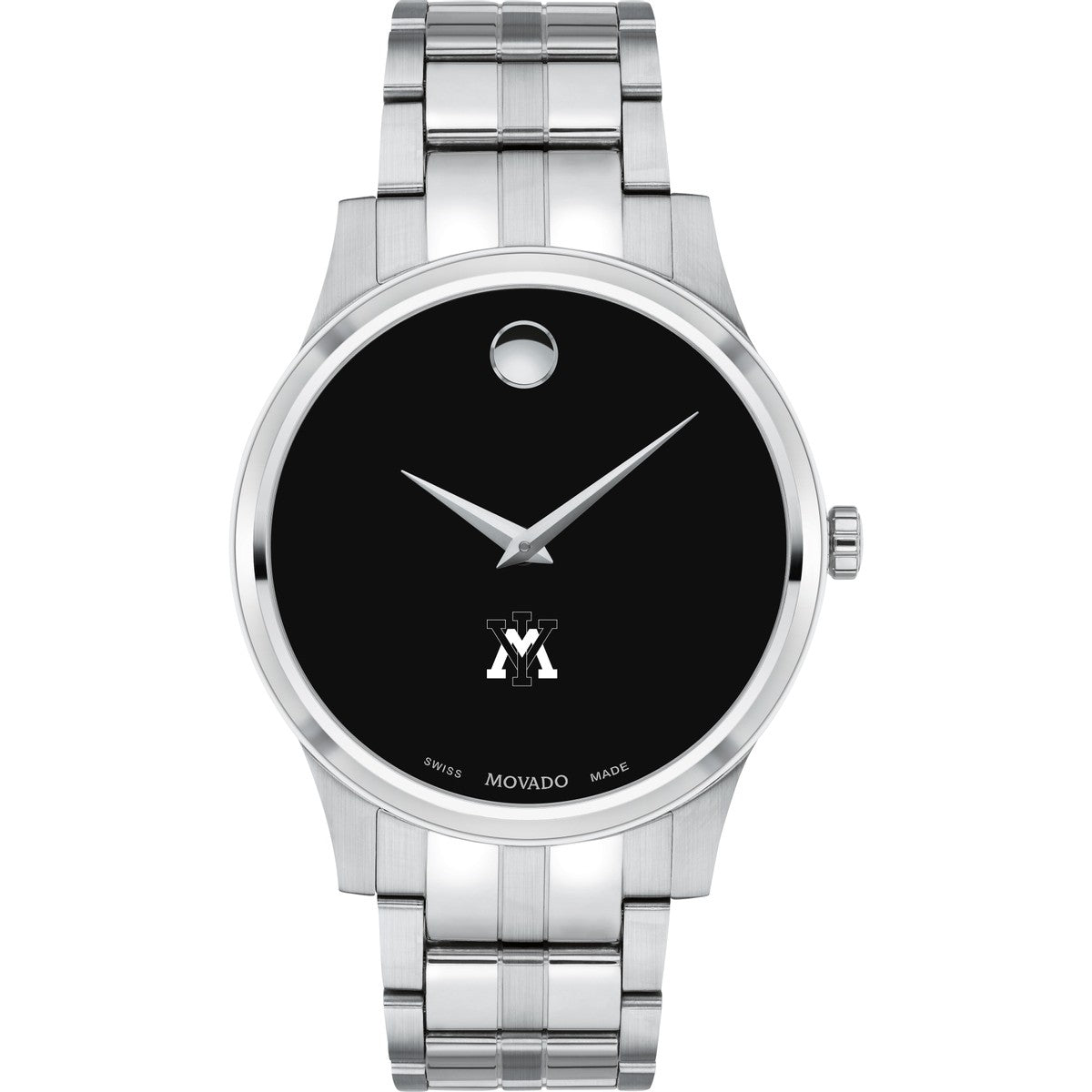The Virginia Military Institute Men's Movado Collection watch showcases the iconic VMI Logo in full color on a sophisticated black dial. This classic timepiece, featuring the renowned concave dot symbolizing the sun at high noon, has been a design masterpiece since its creation in 1947. Personalize your watch with free engraving without any delay to your order.