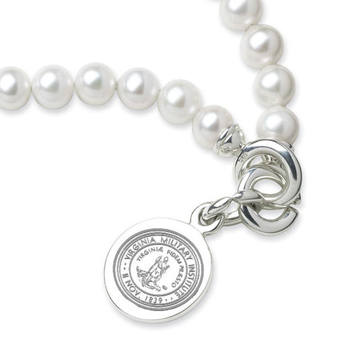 Virginia Military Institute pearl bracelet and sterling silver VMI charm features the VMI Logo delicately engraved on front and interlocking "C" clasp.