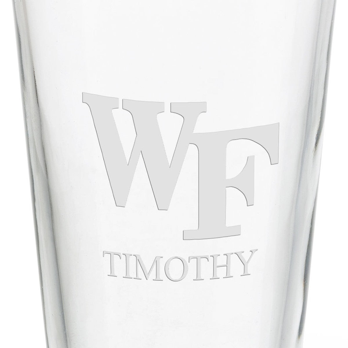 Each Wake Forest 16 oz pint glass is deep-etched with the Wake Forest University logo. Its simple styling and crystal-clear clarity make this glass perfect for any drink. Your name can be added under the logo for free.