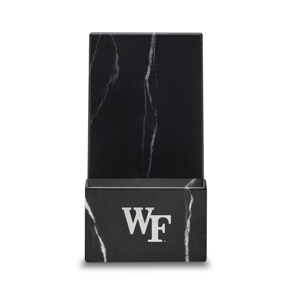 The perfect companion to our marble card holder, the officially licensed Wake Forest University marble phone holder is an essential accessory for every Wake Forest fan's desk. The Wake Forest Logo is elegantly featured on the front of this substantial, solid marble phone holder and accommodates most smartphones.