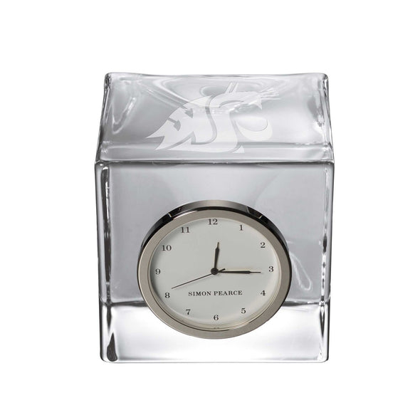 The Washington State University Glass Desk Clock is distinctly etched with the Washington State Logo, and is a great addition to any surface. The clock includes a traditional numbered face with a sweep hand to count the seconds.