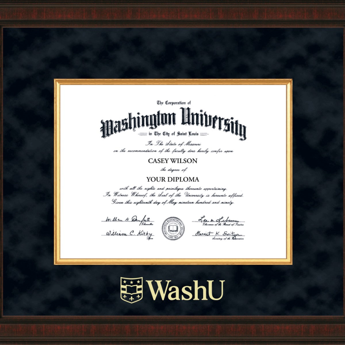 This Washington University in St. Louis diploma frame is specifically made to showcase and preserve your Washington University in St. Louis Diploma. Made from solid wood in the USA to meet stringent Library of Congress standards for archival document preservation.
