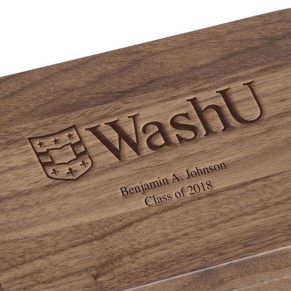Our beautiful solid walnut desk box is made from hand-selected domestic walnut and crafted in the USA. Each box is hand finished with care, and proudly displays the WashU Logo on the lid.