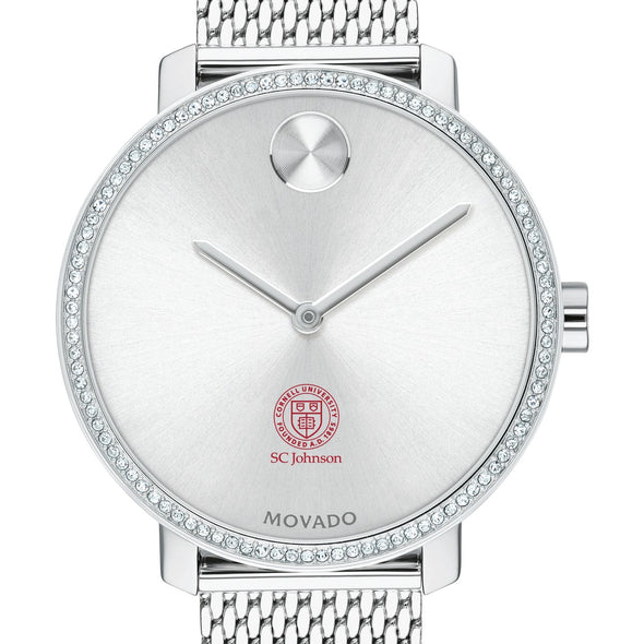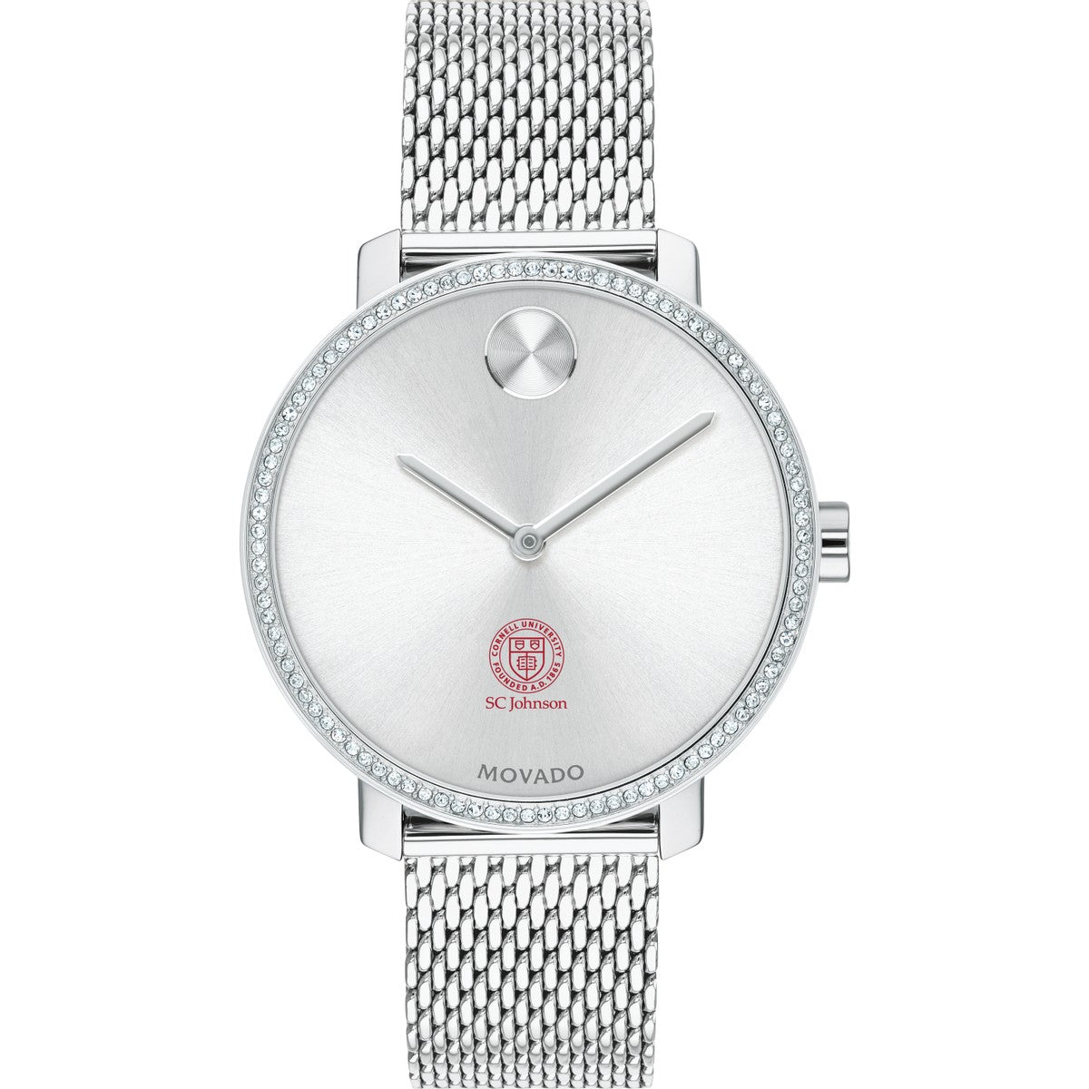 Cornell SC Johnson College of Business Women's Movado BOLD watch features the SC Johnson College logo in full color at 6 o'clock on silver sunray dial.