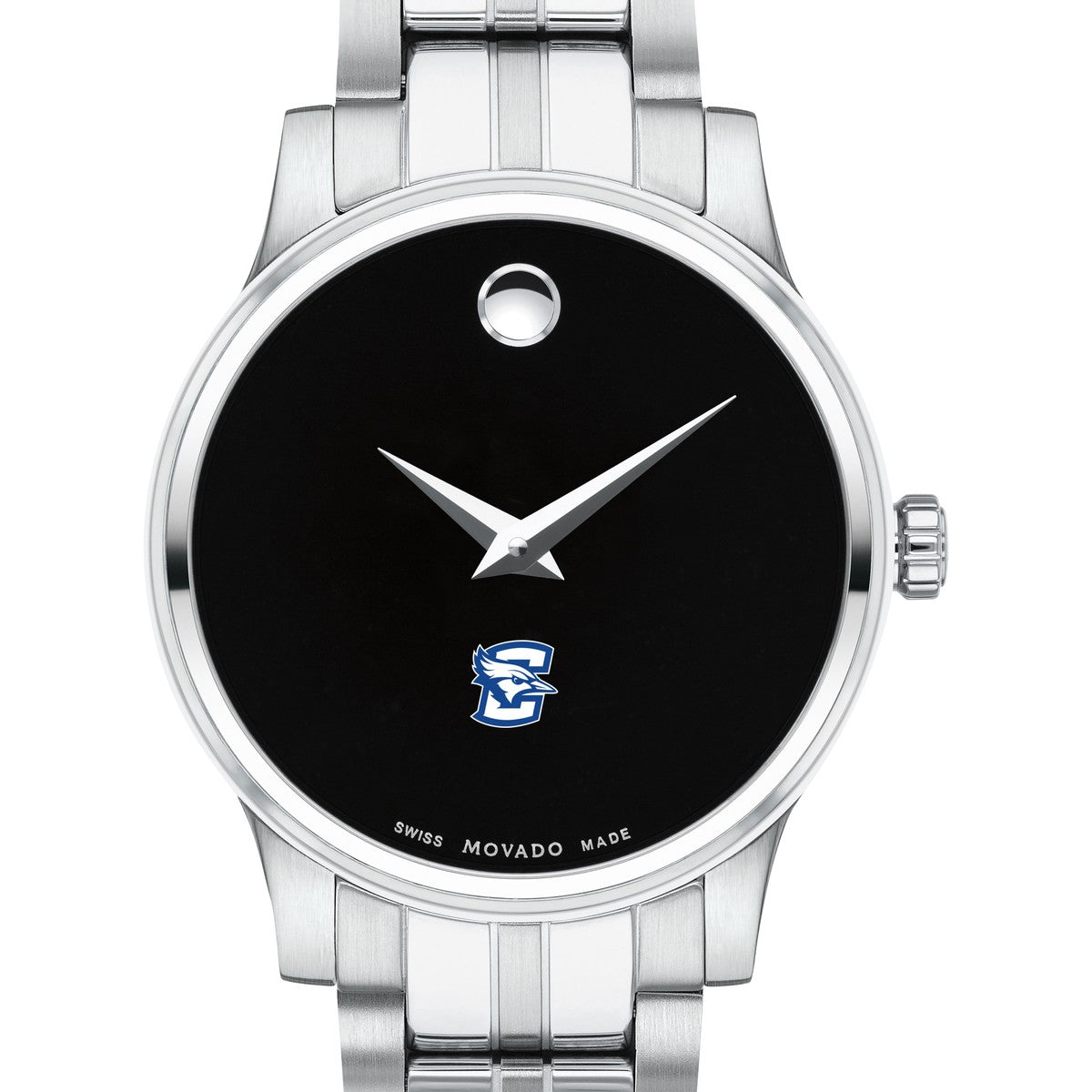 The Creighton University Women's Movado Collection watch showcases the iconic Creighton Logo in full color against a sophisticated black dial. This elegant timepiece, featuring the renowned concave dot symbolizing the sun at high noon, embodies timeless style. Personalize your watch with free engraving without any delay to your order.