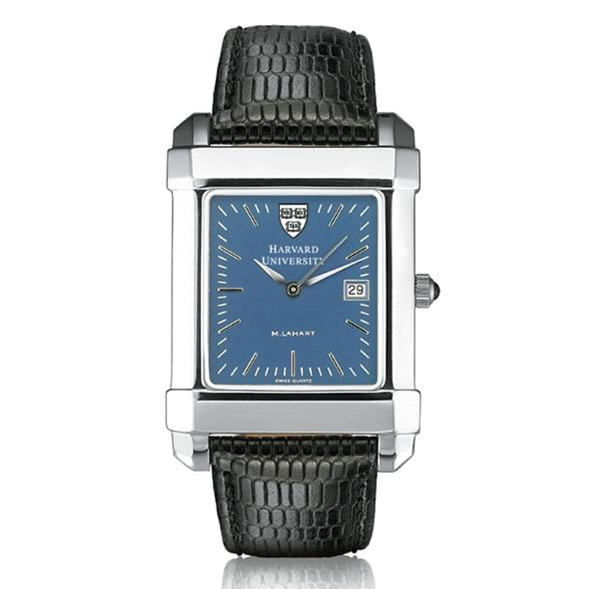 Harvard University men's steel watch featuring Harvard shield at 12 o'clock and "Harvard University" inscribed below on blue dial.