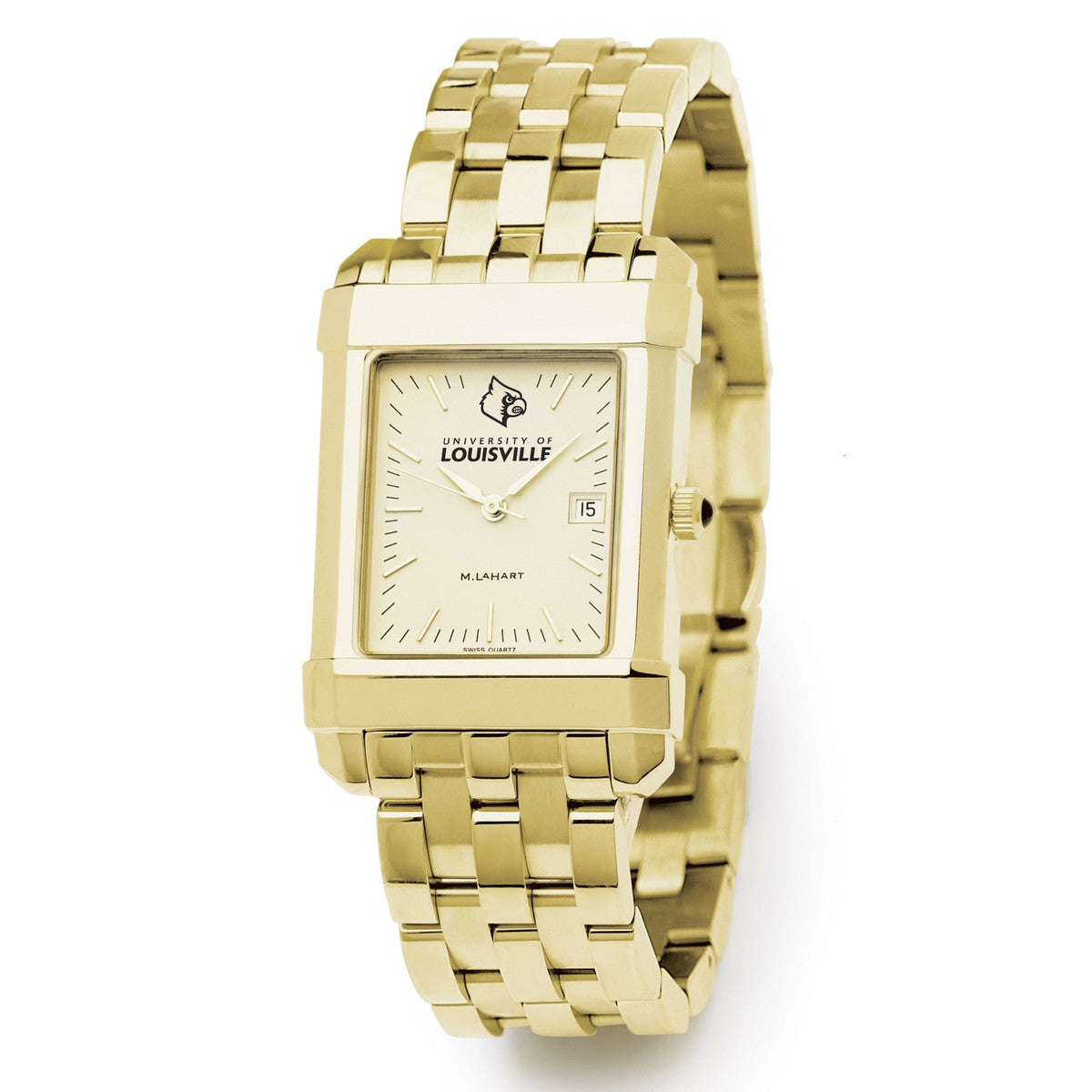 University of Louisville men's gold watch featuring the Louisville logo on cream dial. Free Engraving on all watches.