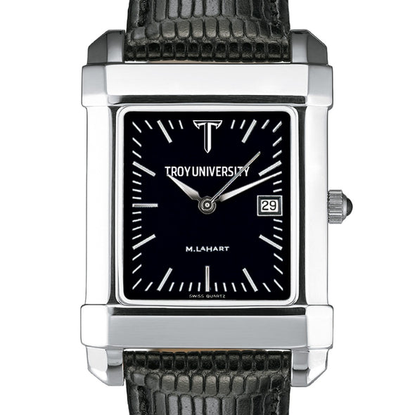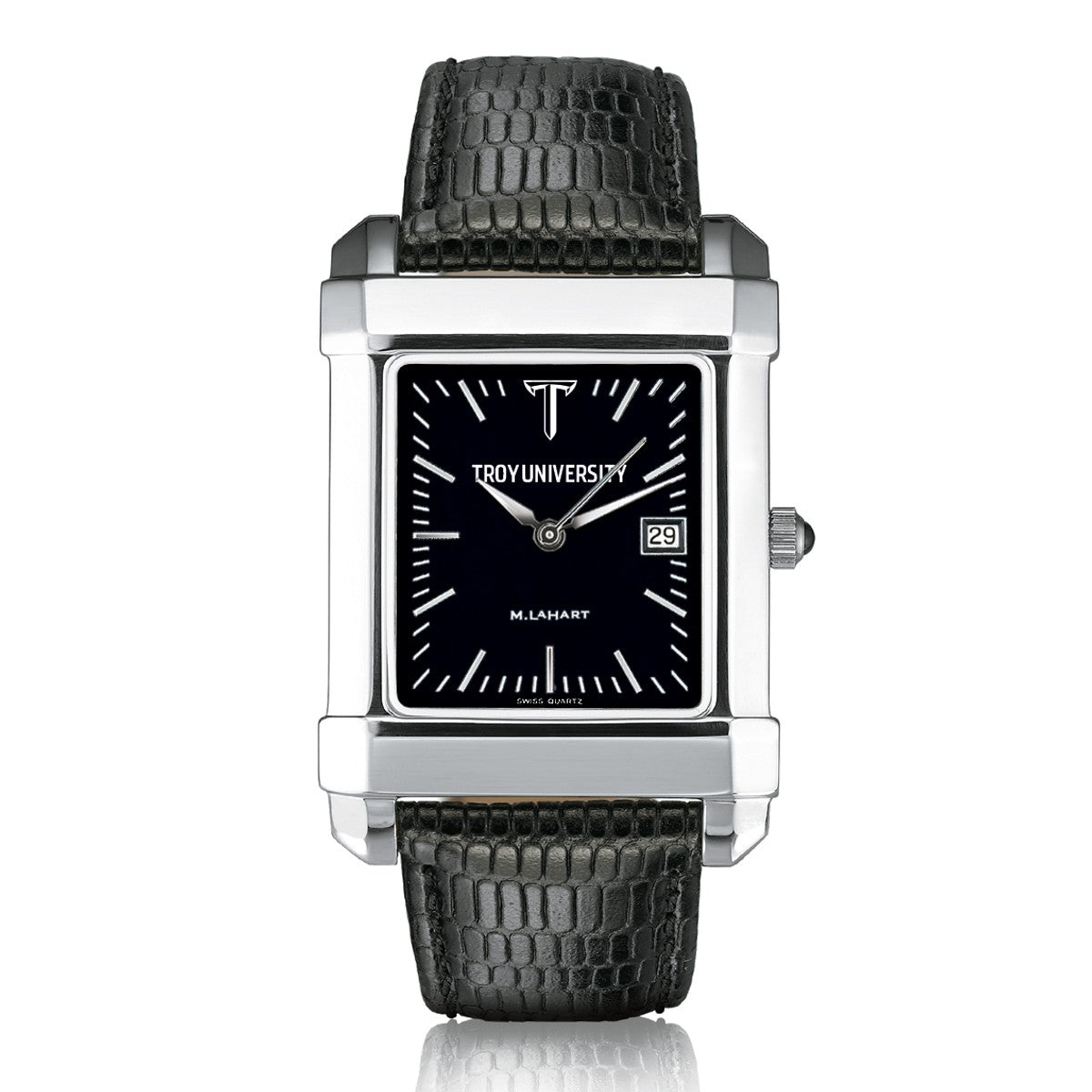 Troy University men's steel watch featuring the Troy Logo on black dial.