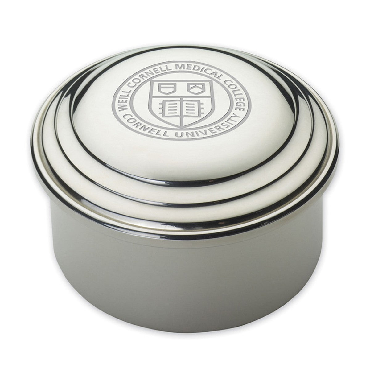 Weill Cornell Medicine pewter keepsake box is a beautiful space to store your treasures and features the on its lid.