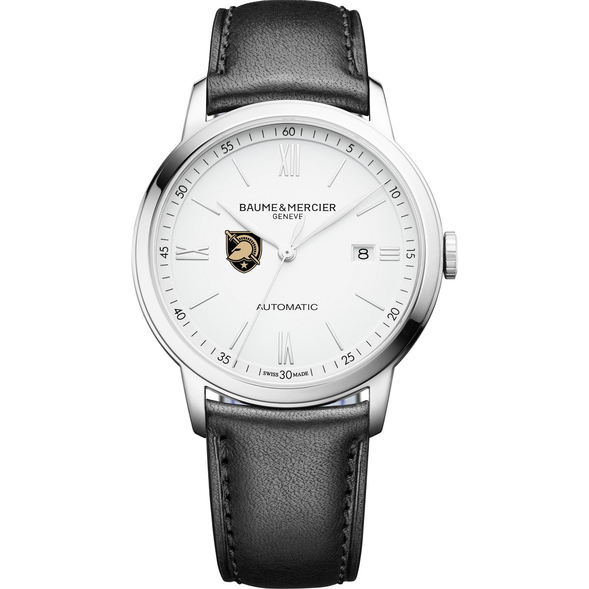 Experience the perfect fusion of school traditions and modern innovation with the West Point Men's Baume et Mercier 42mm Classima Automatic Watch. Its crisp white matte dial with the West Point logo, polished steel hands, and black leather strap embody effortless elegance and superior Swiss craftsmanship. Complimentary personal engraving.