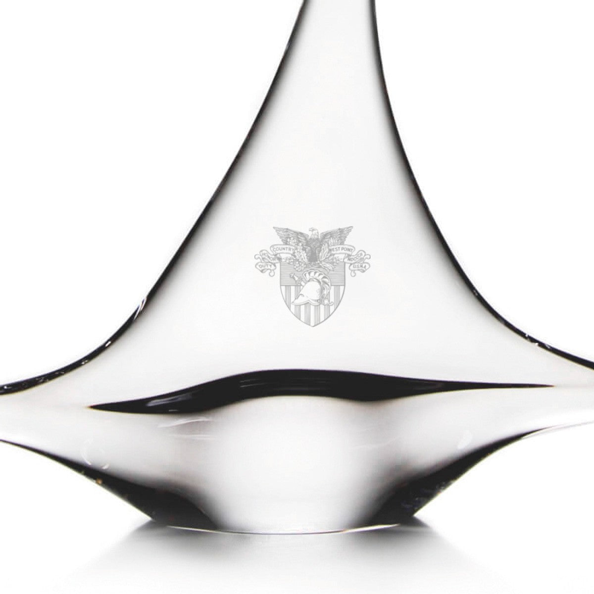 The US Military Academy Glass Sailboat is a beautifully crafted decorative piece, featuring the West Point Logo artfully etched into the shimmering glass. This elegant sailboat symbolizes adventure and West Point spirit. serving as a charming reminder of your school pride.