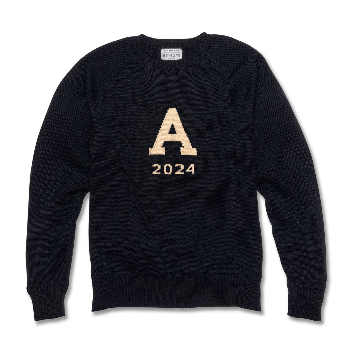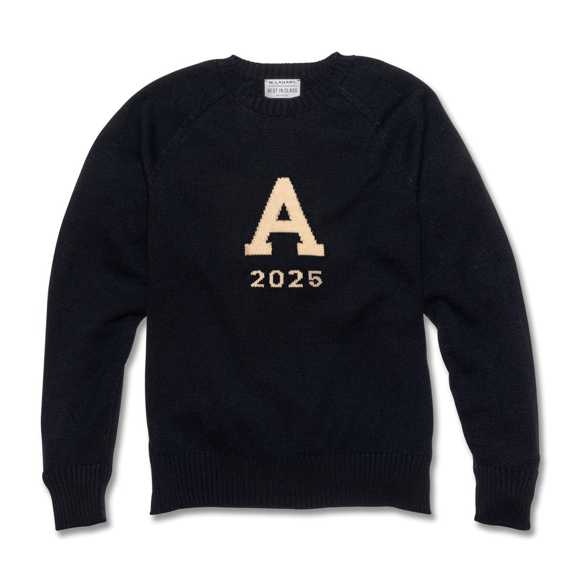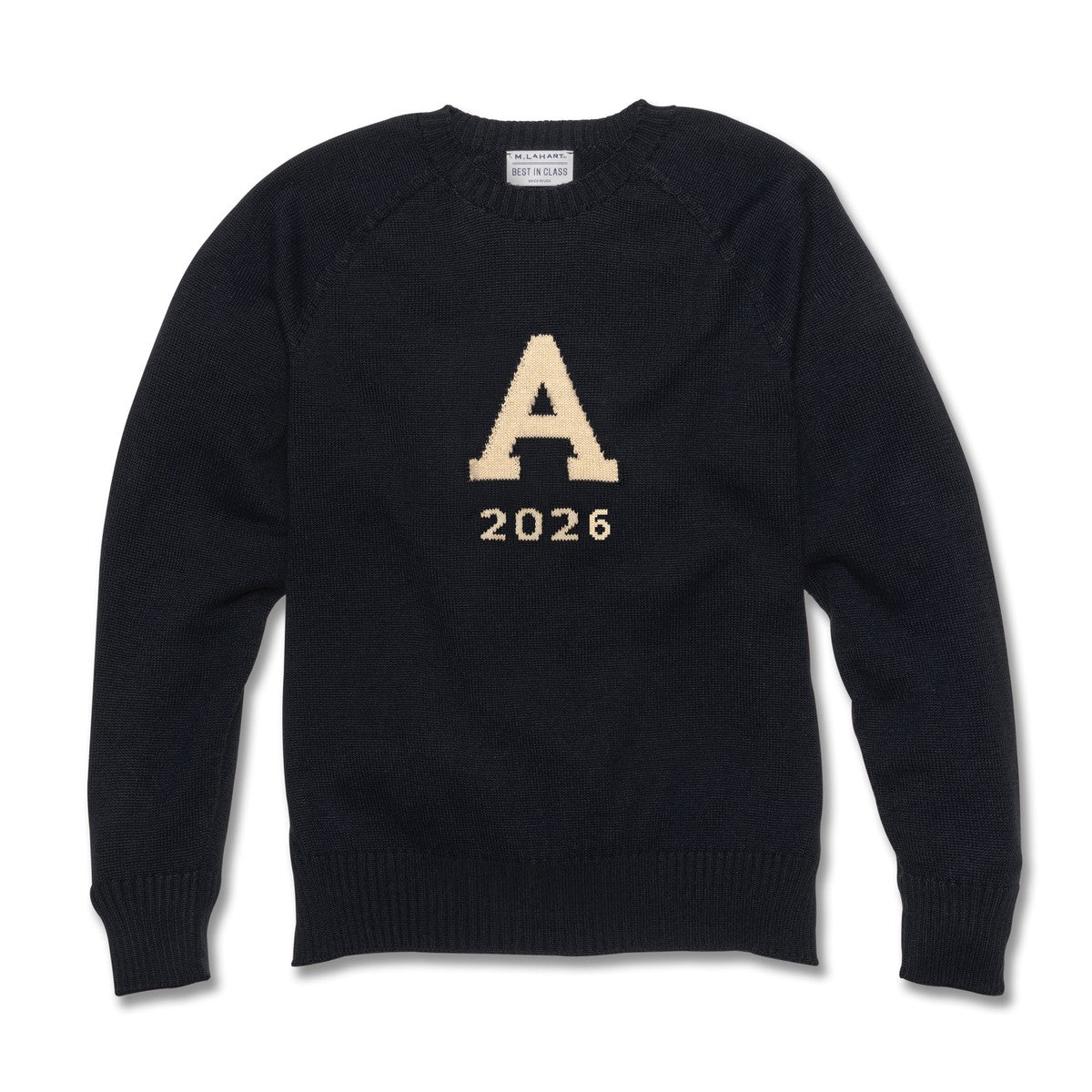 This Black and Khaki sweater is custom-made in the USA exclusively for M.LaHart. Our US Military Academy Class Year Letter Sweater with year is styled and produced in the most modern and luxurious way possible. 3D knitting creates virtually zero waste and the highest quality knitwear on the global market