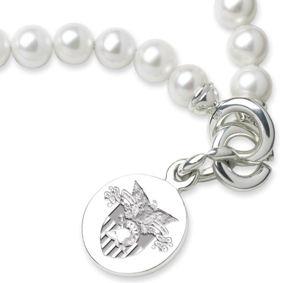 West Point pearl bracelet and sterling silver USMA charm features USMA crest delicately engraved on front and interlocking "C" clasp.