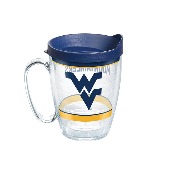 Show your West Virginia pride with our Tervis travel mug! Perfect for on-the-go with easy-to-grip handle and free lid. The spirited design is sealed between the tumbler walls. Double-walled construction keeps your hot drinks hot, and cold drinks cold longer.