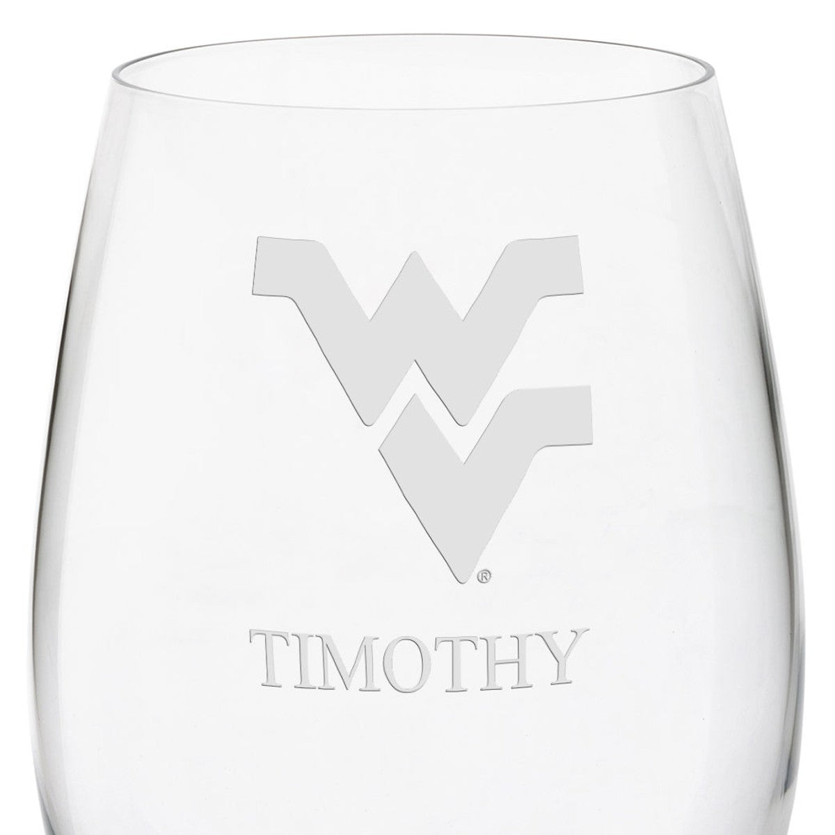 Fine West Virginia University wine glasses are an elegant touch for your table or bar. The West Virginia logo is deep-etched on each glass.