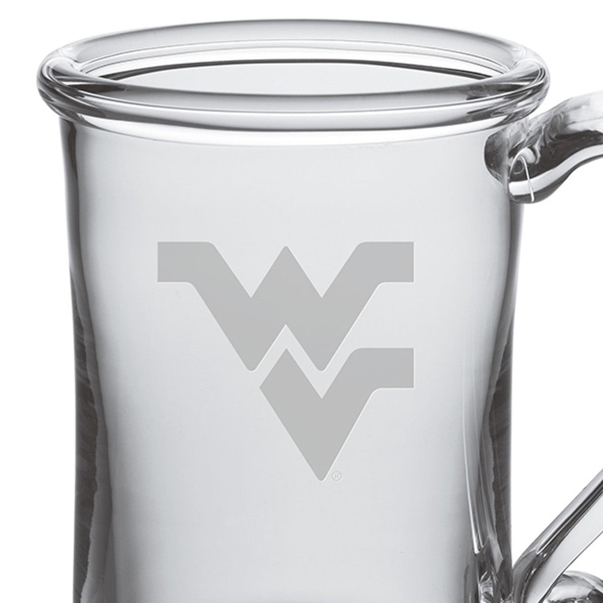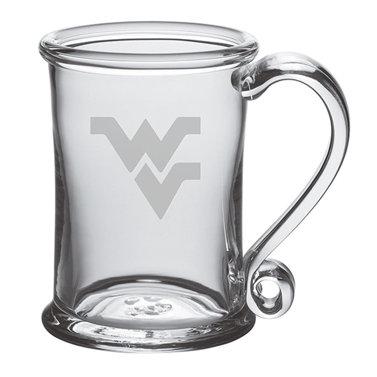 The West Virginia Glass Tankard is an ideal choice if you're looking for a versatile glass. The enchantingly curved glass handle will help ensure that you don't spill a drop. The Glass Tankard has the West Virginia logo handsomely etched on the hand-blown glass.