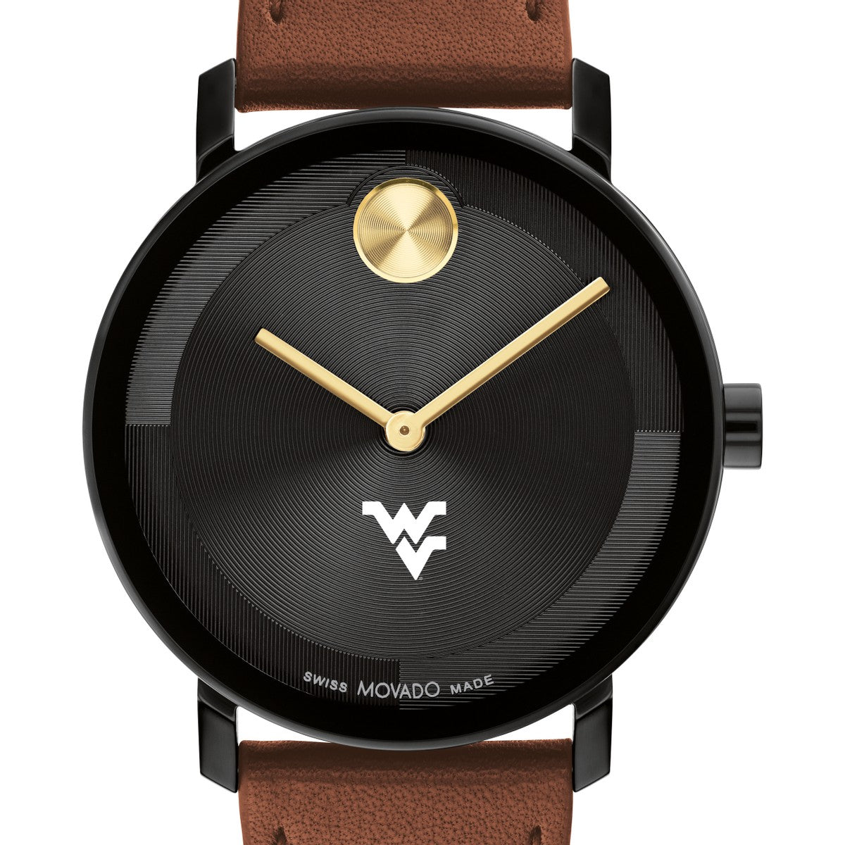 Embrace timeless sophistication with the West Virginia University Men's Movado watch, featuring West Virginia logo on the dial. Crafted with a luxurious Cognac Nappa leather strap and a striking micro-textured black tonal dial with a glossy lacquer overlay. Complimentary personal engraving.