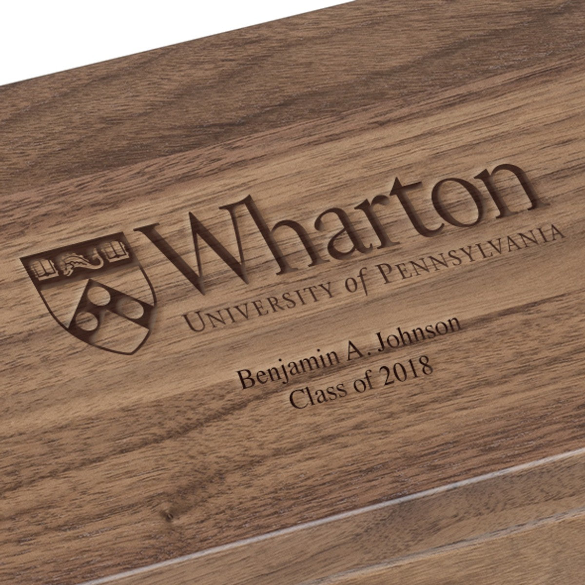 Our beautiful solid walnut desk box is made from hand-selected domestic walnut and crafted in the USA. Each box is hand finished with care, and proudly displays the Wharton Logo on the lid.
