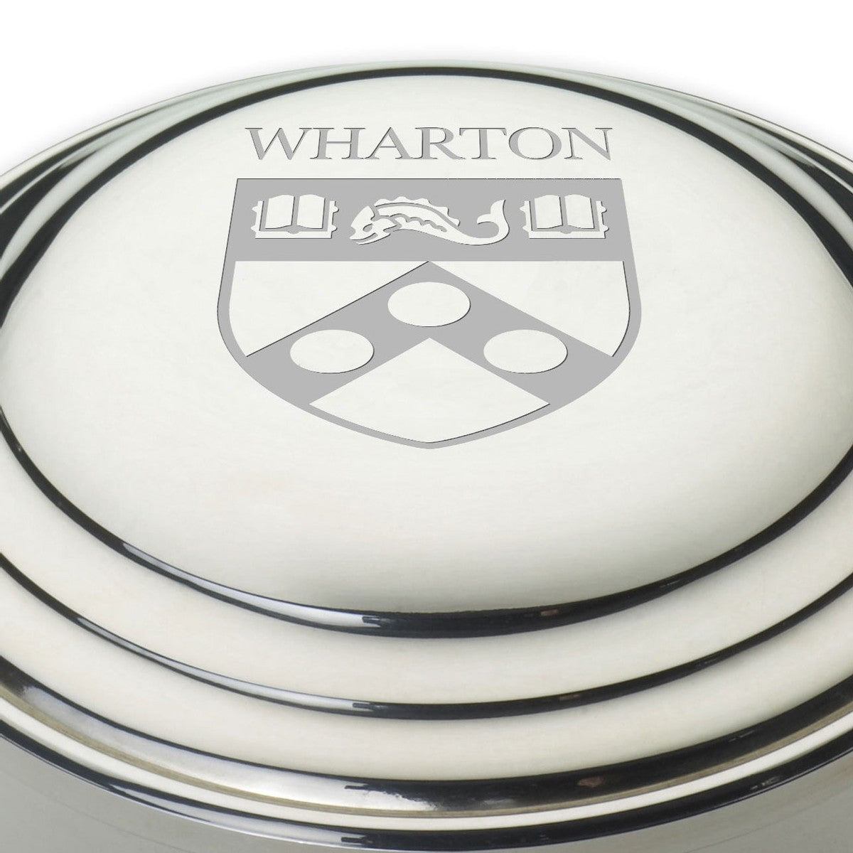 Wharton pewter keepsake box is a beautiful space to store your treasures and features the Wharton Logo on its lid.
