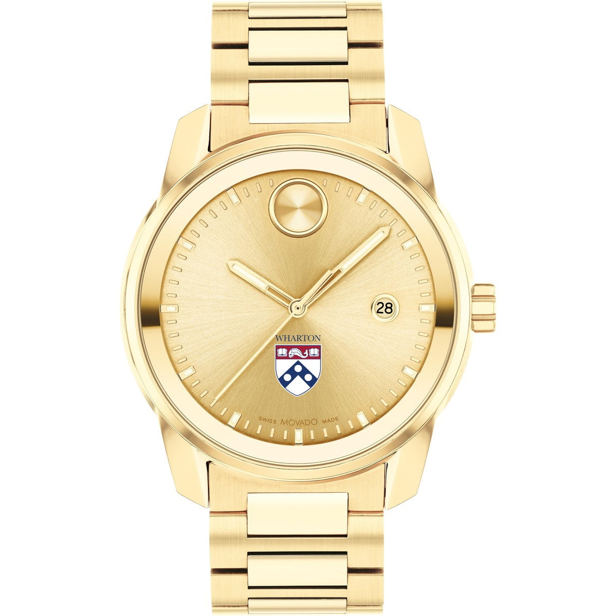 The Wharton Men's BOLD Movado watch showcases the iconic Wharton Logo on its luxurious gold-tone dial. Crafted with a premium gold ion-plated stainless steel case and bracelet, this timepiece exudes refined elegance and sophistication. The perfect statement accessory for any occasion, this Movado watch can be personalized with free engraving without delaying order processing. Complimentary personal engraving.