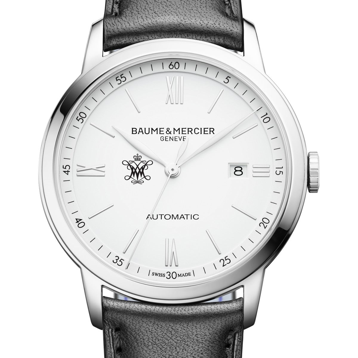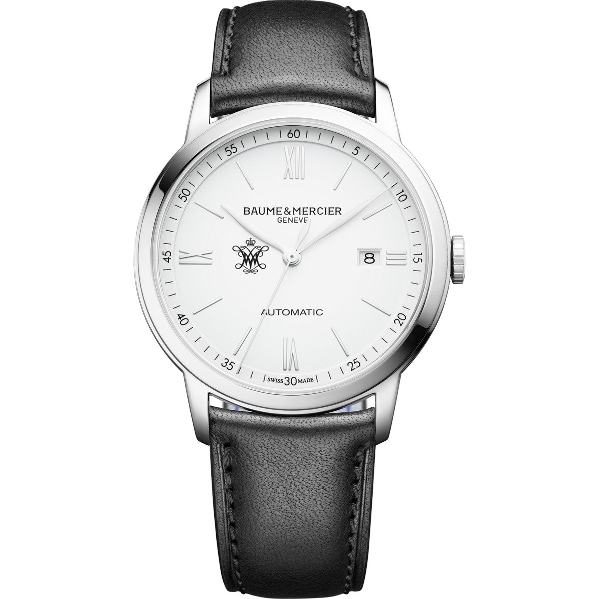 William & Mary Men's Baume et Mercier 42mm Classima Automatic Watch with White Dial & Black Leather Strap