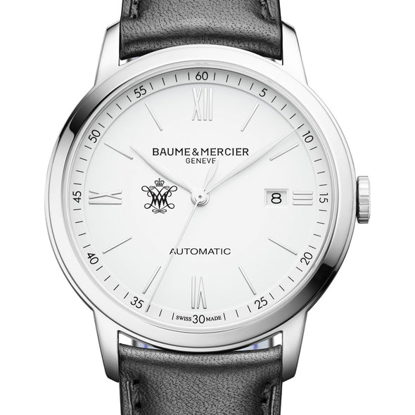 Experience the perfect fusion of school traditions and modern innovation with the William & Mary Men's Baume et Mercier 42mm Classima Automatic Watch. Its crisp white matte dial with the William & Mary logo, polished steel hands, and black leather strap embody effortless elegance and superior Swiss craftsmanship. Complimentary personal engraving.