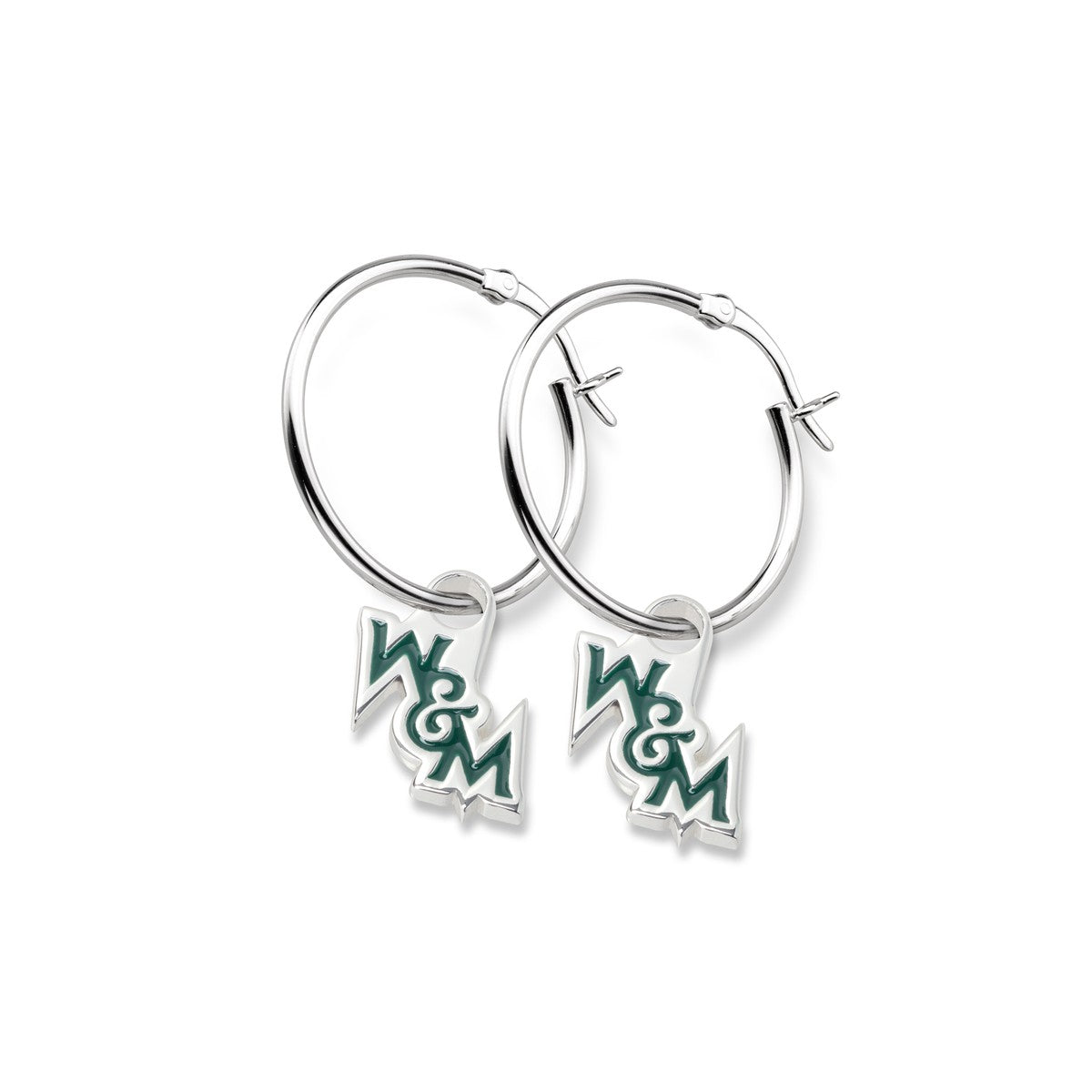 Our stylish William & Mary sterling silver earrings are the perfect compliment to any outfit. These earrings are sure to turn heads; each adorned with a sterling silver charm featuring the school logo in colored enamel.