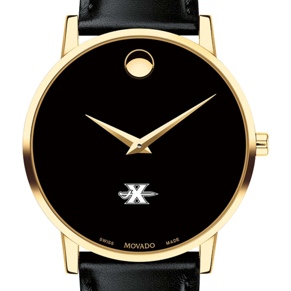 Xavier University Men's Movado Museum watch features the Xavier Logo in full color at 6 o'clock on black dial. Created in 1947, the iconic concave dot symbolizes the sun at high-noon. Complimentary personal engraving.