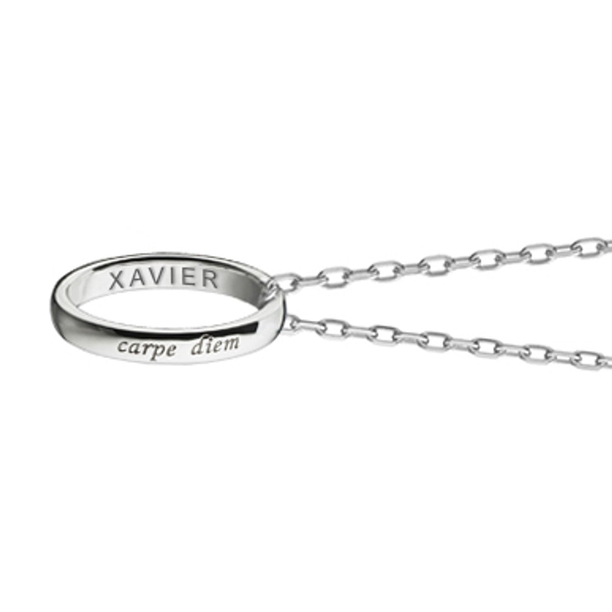 For centuries, poesy rings have carried special messages, delicately engraved. Now available with "XAVIER" inside the ring and spirited "Carpe Diem" inscribed on the outside.