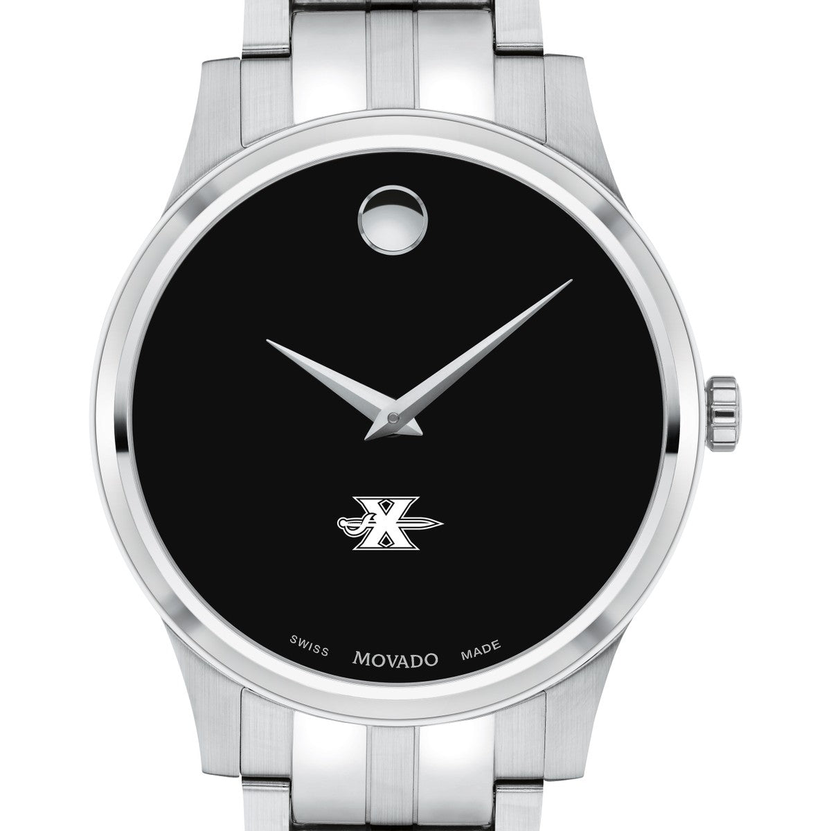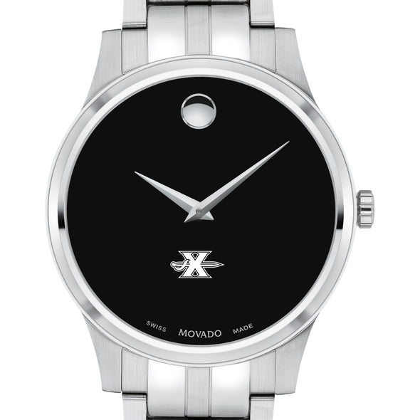 The Xavier University Men's Movado Collection watch showcases the iconic Xavier Logo in full color on a sophisticated black dial. This classic timepiece, featuring the renowned concave dot symbolizing the sun at high noon, has been a design masterpiece since its creation in 1947. Personalize your watch with free engraving without any delay to your order.