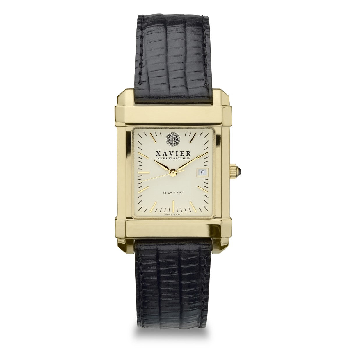 Xavier University of Louisiana men's gold watch featuring the XULA Logo on cream dial. Free Engraving on all watches.
