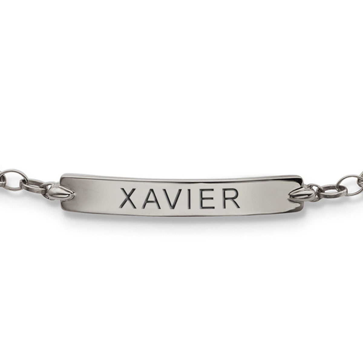A feminine, delicate bracelet in sterling silver as appropriate for evening wear as day. "XAVIER" engraved on slim banner accentuates the elegance.