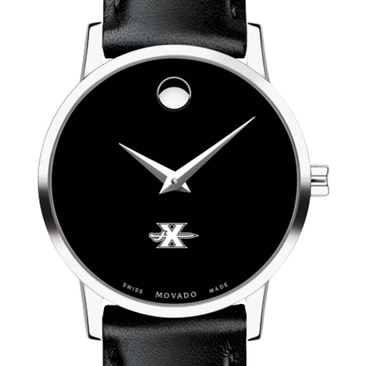 Xavier University Women's Movado Museum watch features the Xavier Logo in full color at 6 o'clock on black dial. Created in 1947, the iconic concave dot symbolizes the sun at high-noon. Complimentary personal engraving.