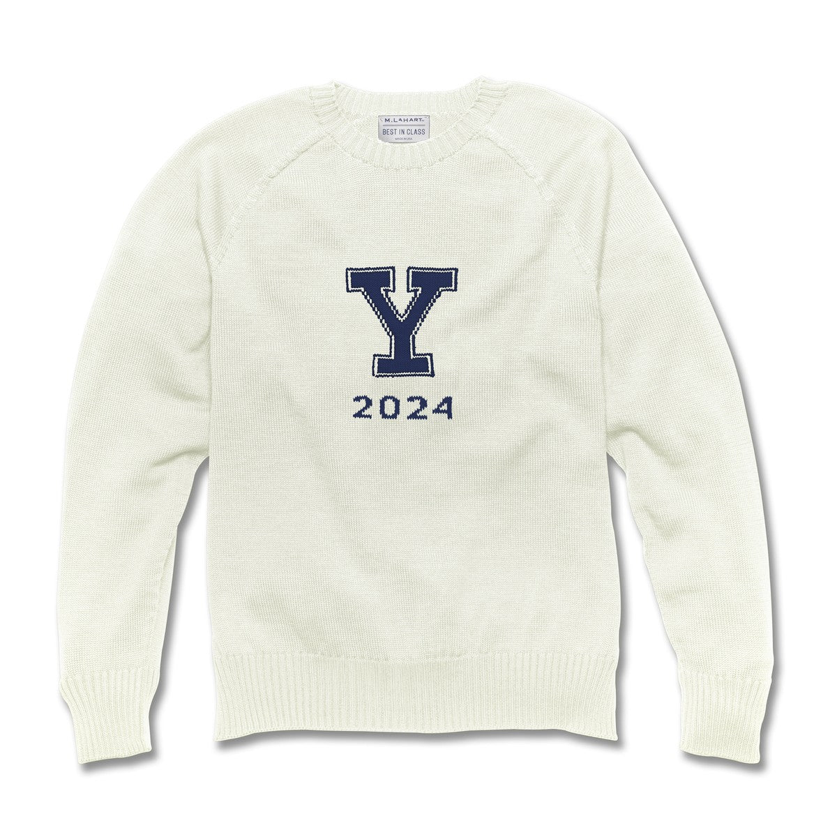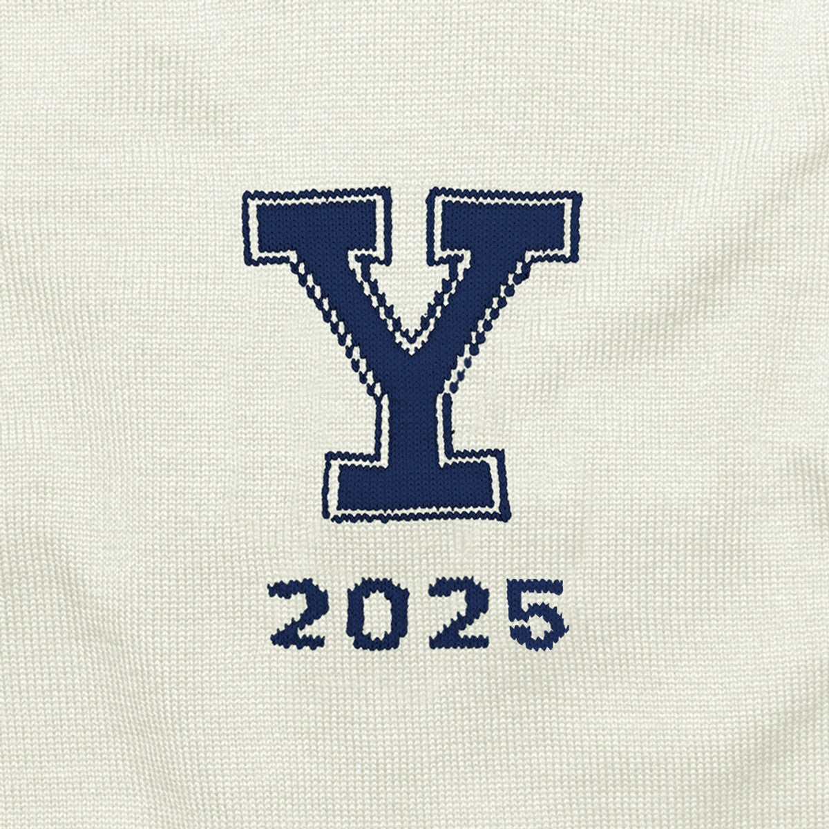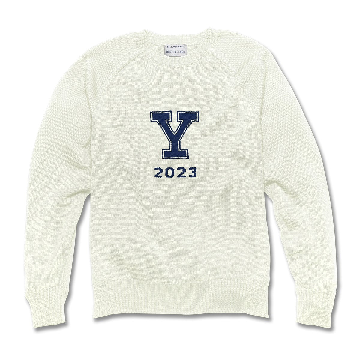 This Ivory and Navy Blue sweater is custom-made in the USA exclusively for M.LaHart. Our Yale University Class Year Letter Sweater with year is styled and produced in the most modern and luxurious way possible. 3D knitting creates virtually zero waste and the highest quality knitwear on the global market