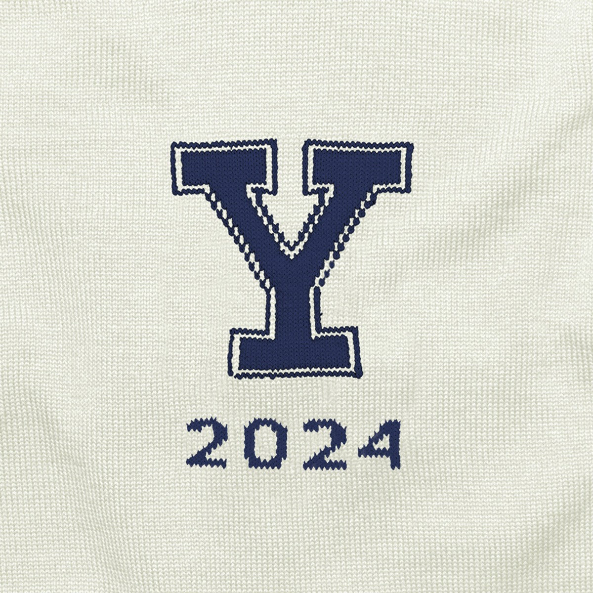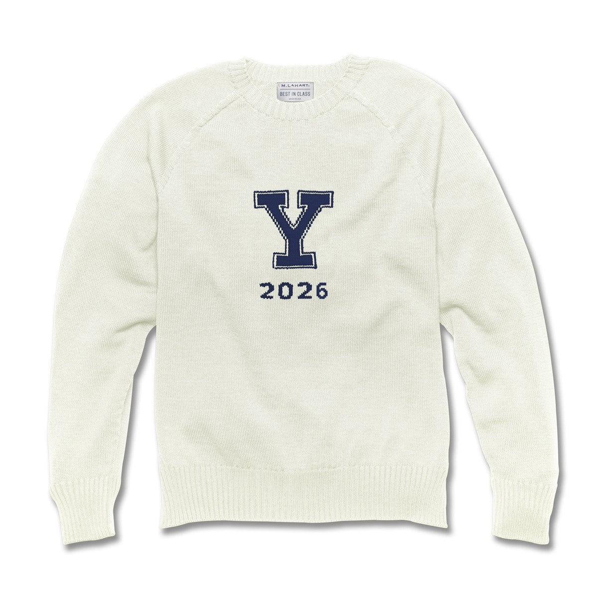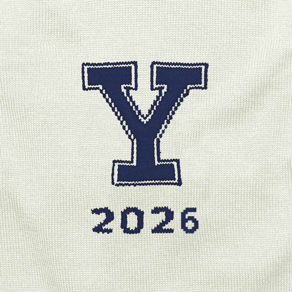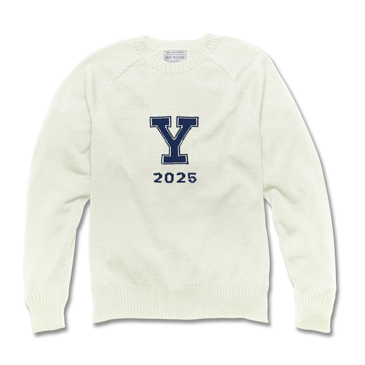 This Ivory and Navy Blue sweater is custom-made in the USA exclusively for M.LaHart. Our Yale University Class Year Letter Sweater with year is styled and produced in the most modern and luxurious way possible. 3D knitting creates virtually zero waste and the highest quality knitwear on the global market