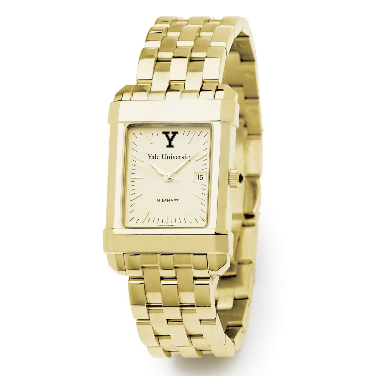 Yale University men's gold watch featuring the Yale Logo on cream dial. Free Engraving on all watches.