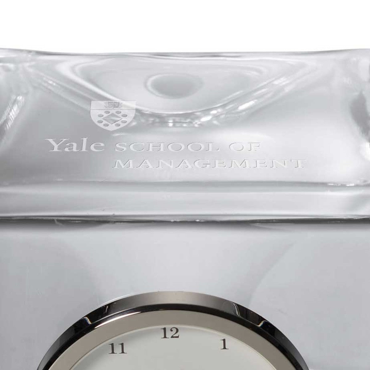 The Yale School of Management Glass Desk Clock is distinctly etched with the Yale SOM Logo, and is a great addition to any surface. The clock includes a traditional numbered face with a sweep hand to count the seconds.