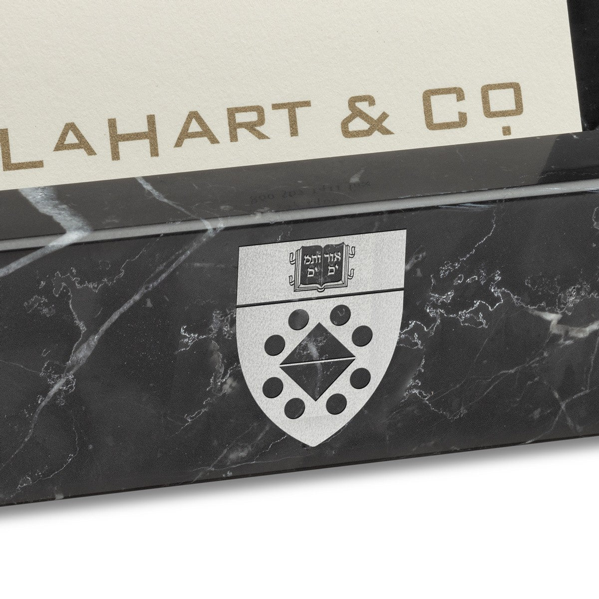 Perfect for new grads and seasoned professionals, the officially licensed Yale School of Management marble cardholder is an essential for the desk of Yale SOM fans. The Yale SOM Logo is elegantly featured on the front of this substantial, solid marble card holder and accommodates all standard size business cards.