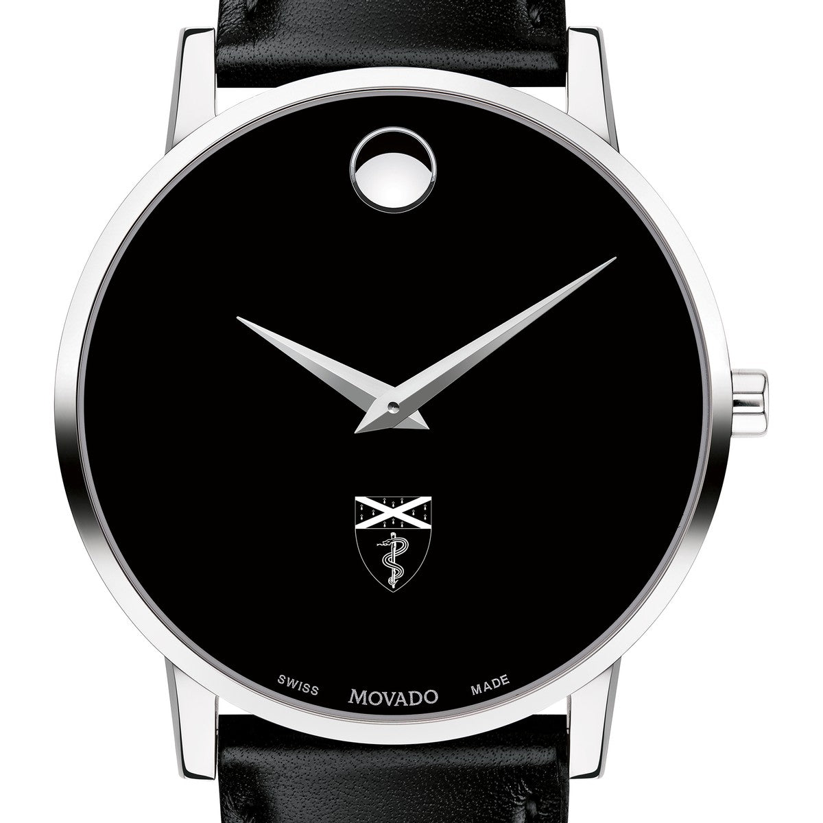 Yale School of Medicine Men's Movado Museum watch features the Yale School of Medicine logo in full color at 6 o'clock on black dial. Created in 1947, the iconic concave dot symbolizes the sun at high-noon. Complimentary personal engraving.